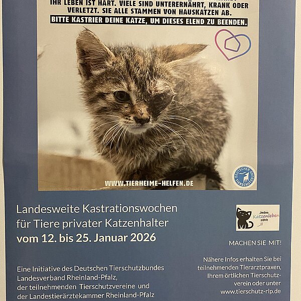 Seit über 120 Jahren setzen wir uns mit Leidenschaft für den Tierschutz ein. Der Tierschutzverein Koblenz und Umgebung e.V. hat es sich zur Aufgabe gemacht, Tieren in Not ein neues, liebevolles Zuhause zu schenken – und das an 365 Tagen im Jahr.