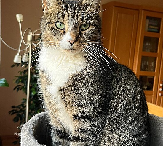 Mäuschen (von ca 2017) ist eine liebe und zurückhaltende Katze, die jedoch das kuscheln mit ihrem Menschen liebt.