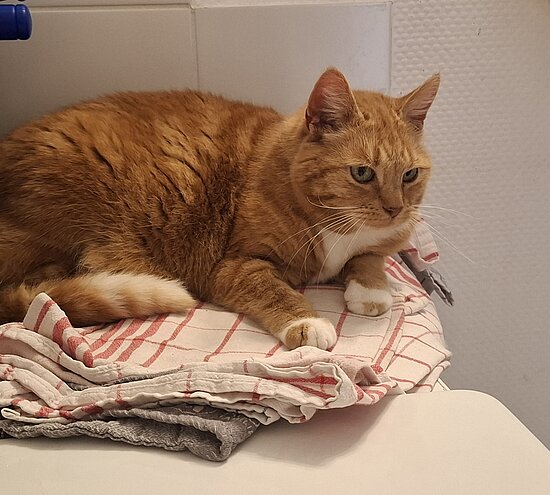 Autofahren mag er gar nicht und beim Tierarzt wird er dem Ruf roter Kater gerecht (dh. leider nicht so kooperativ)