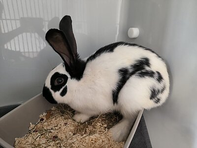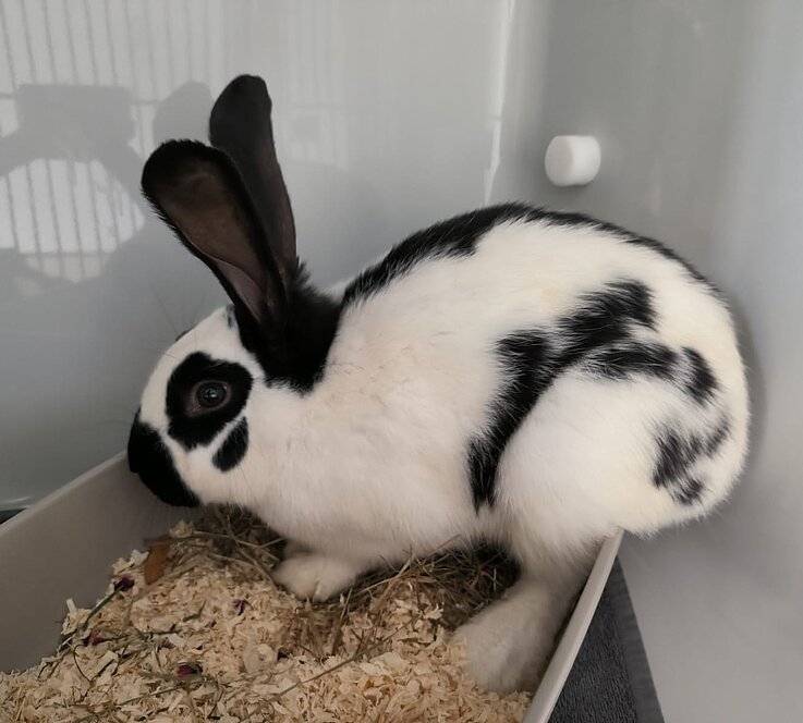 Arlo kam mit weiteren Kaninchen aus einem anderen Tierheim zu uns.
